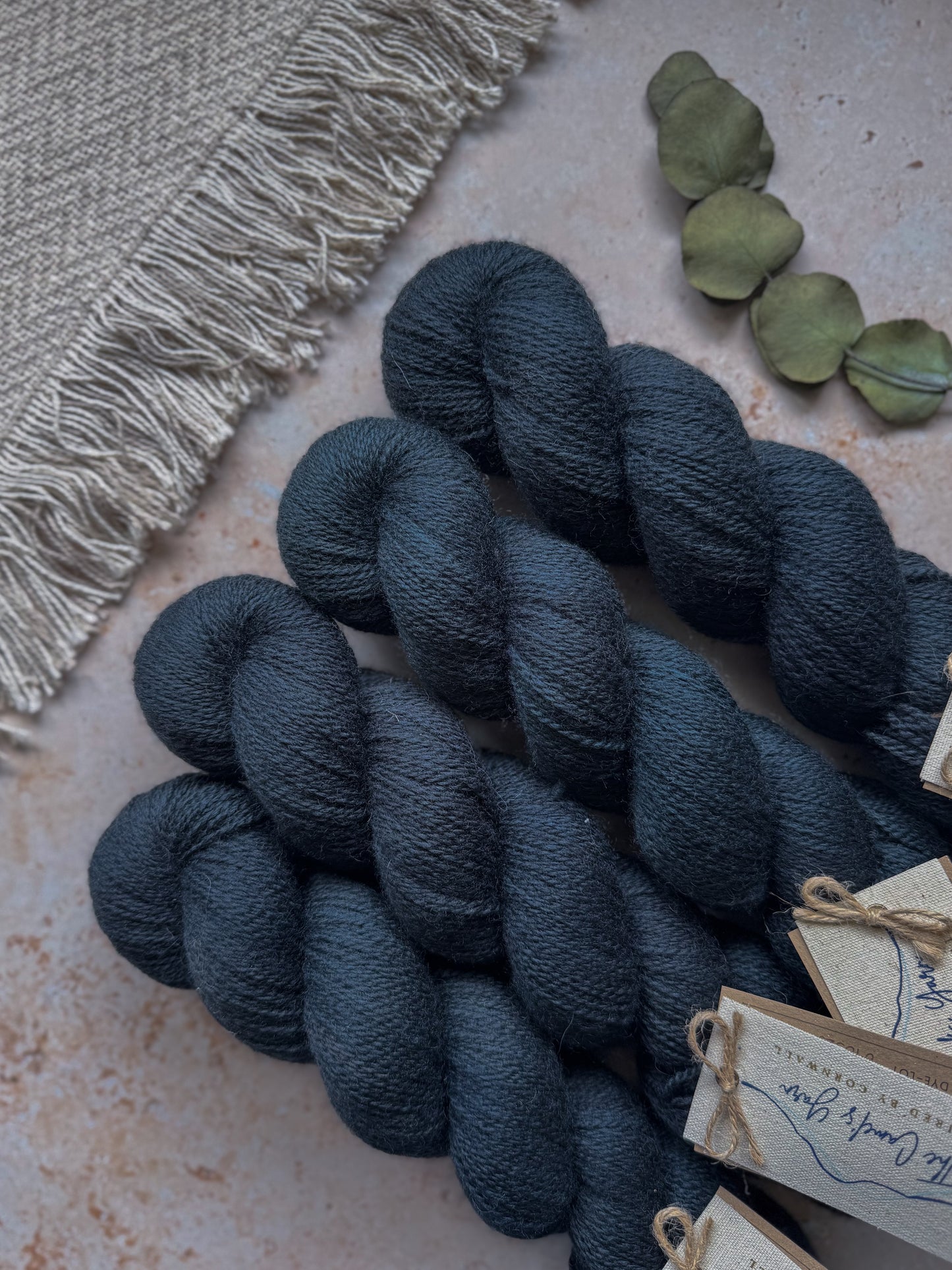 The opening line of this lovely old book was just asking to become a colourway name! To Behold The Sea is a beautiful deep blue, which looks beautifully dusky on our NSW bases!