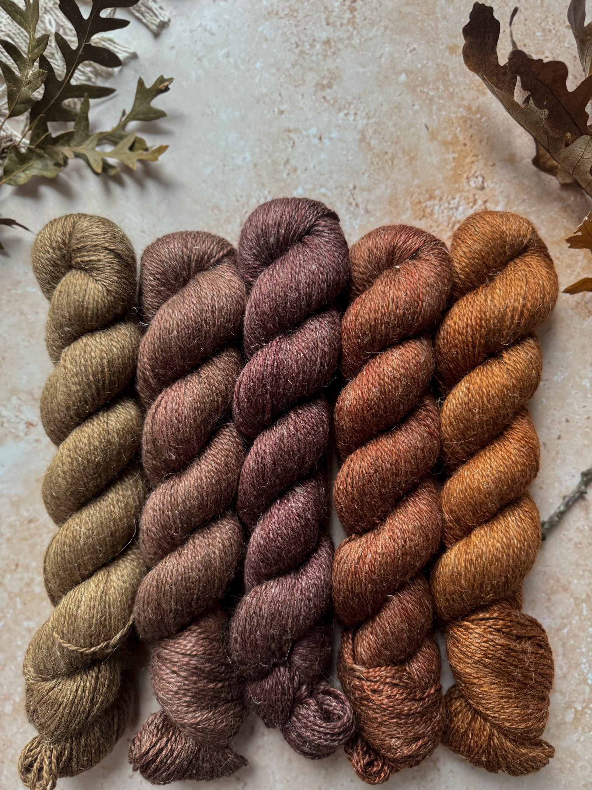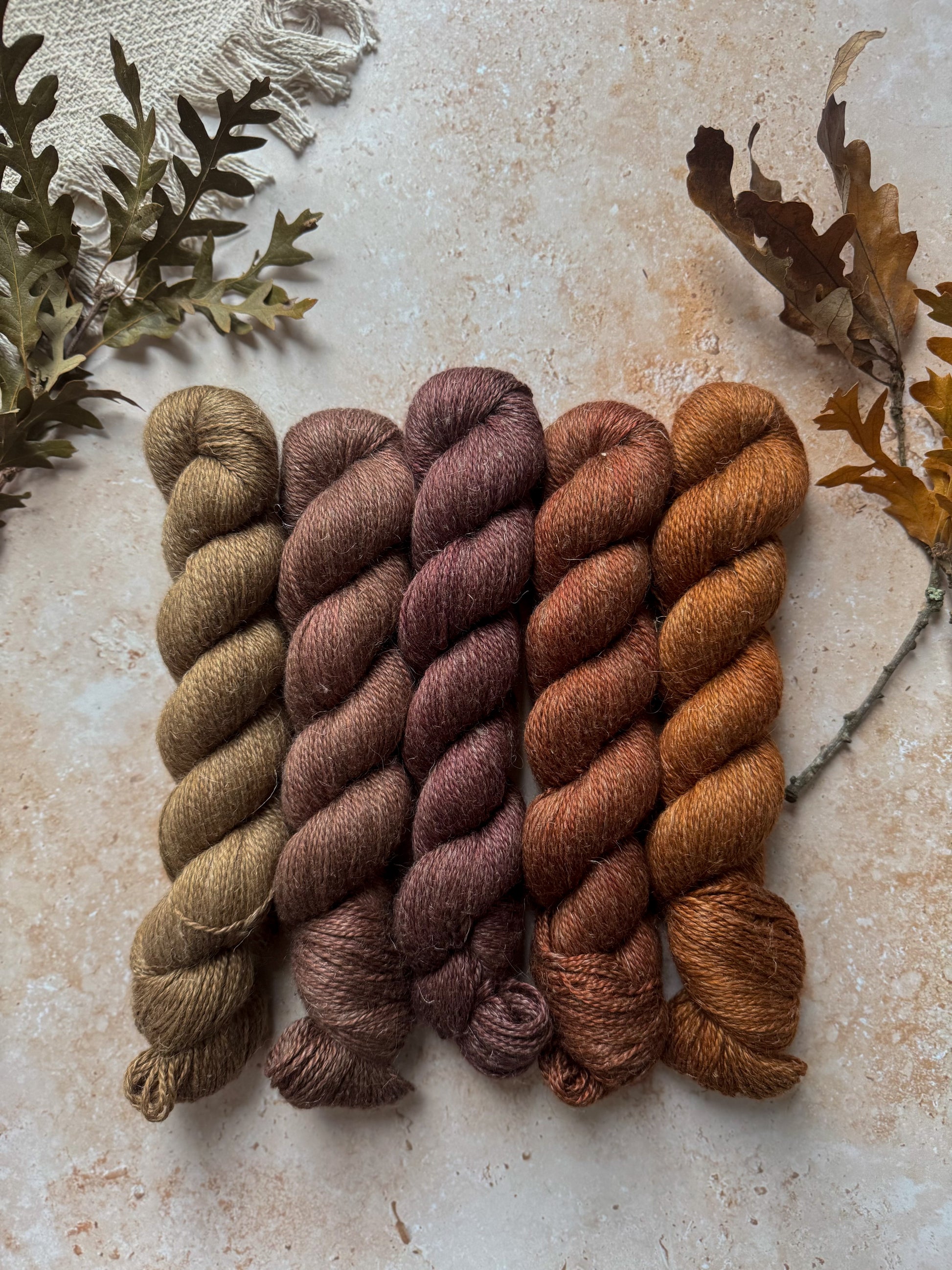 A set of five Sea Drift Skeins in an Autumn fade. Full skeins or mini skeins available.