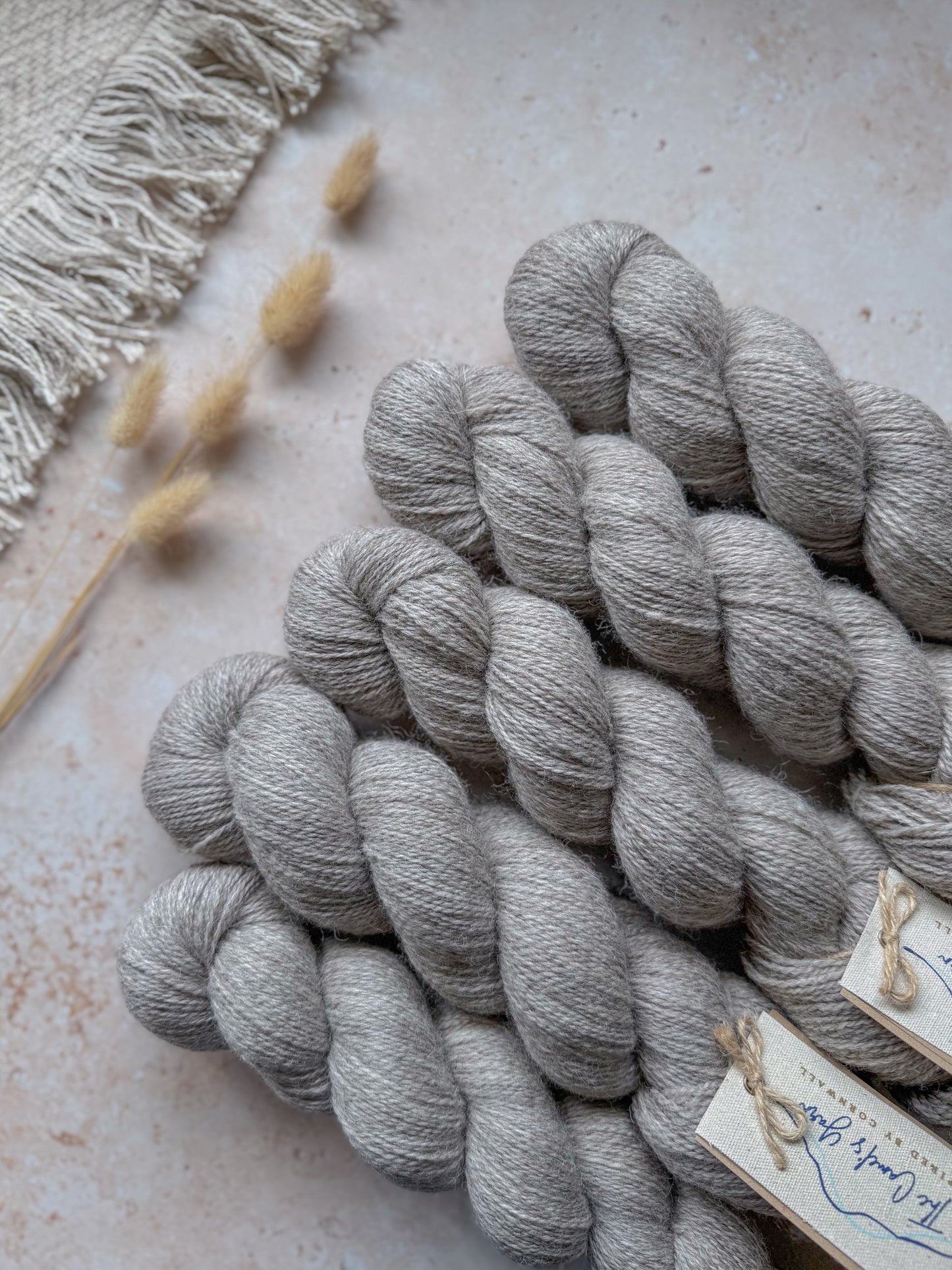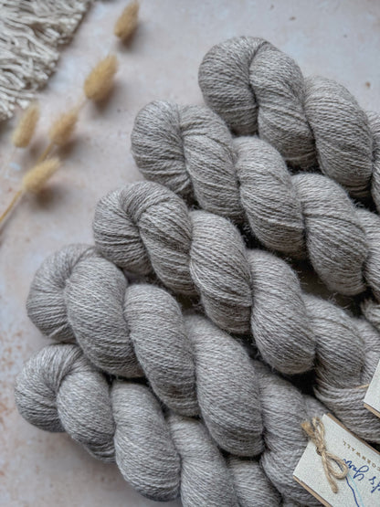 Moorland Fingering in its natural undyed form is a beautiful, light, heather-grey.