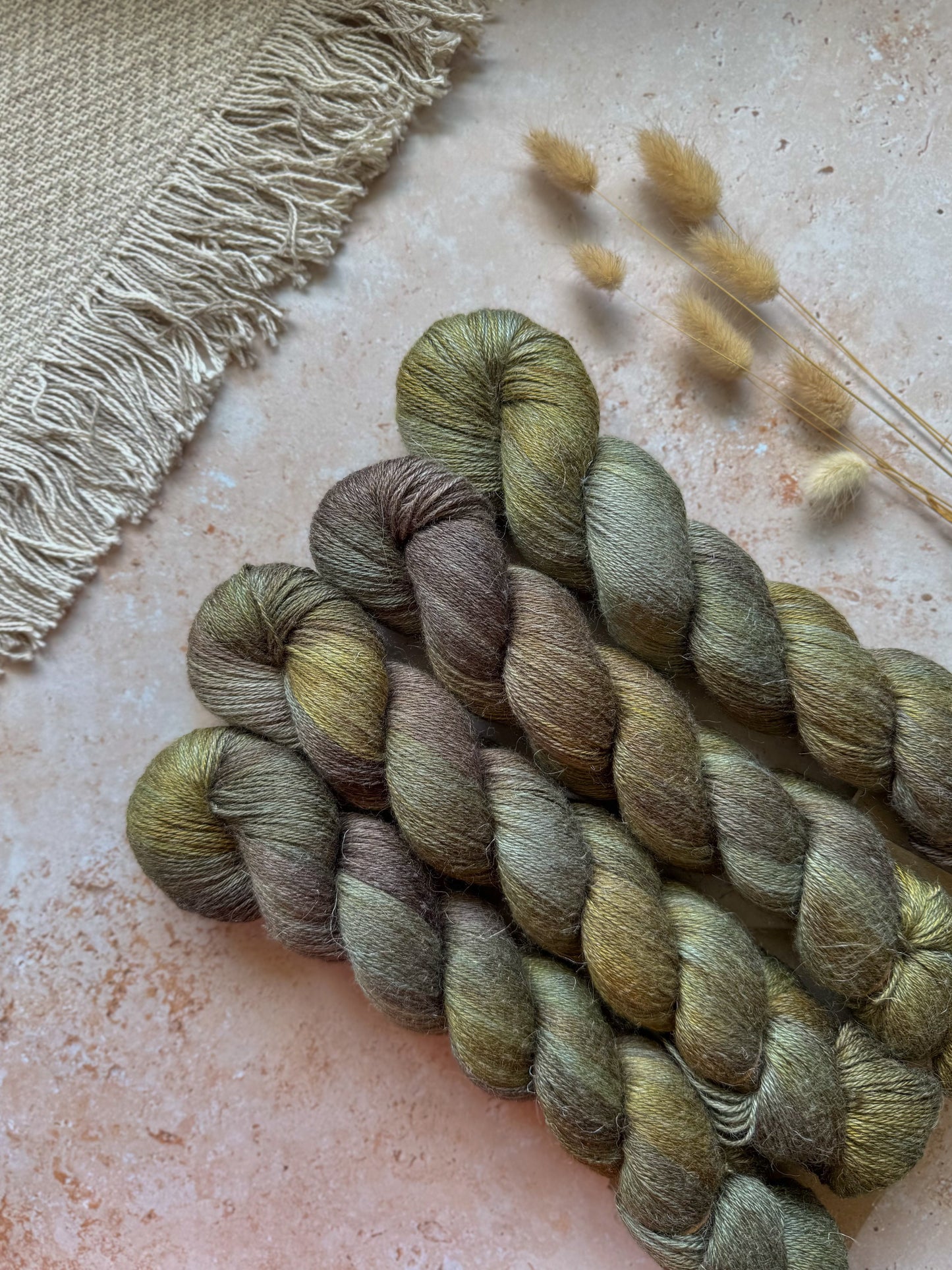 Tangles and Dulse, a gorgeous blend of grey-green, browns and gold!