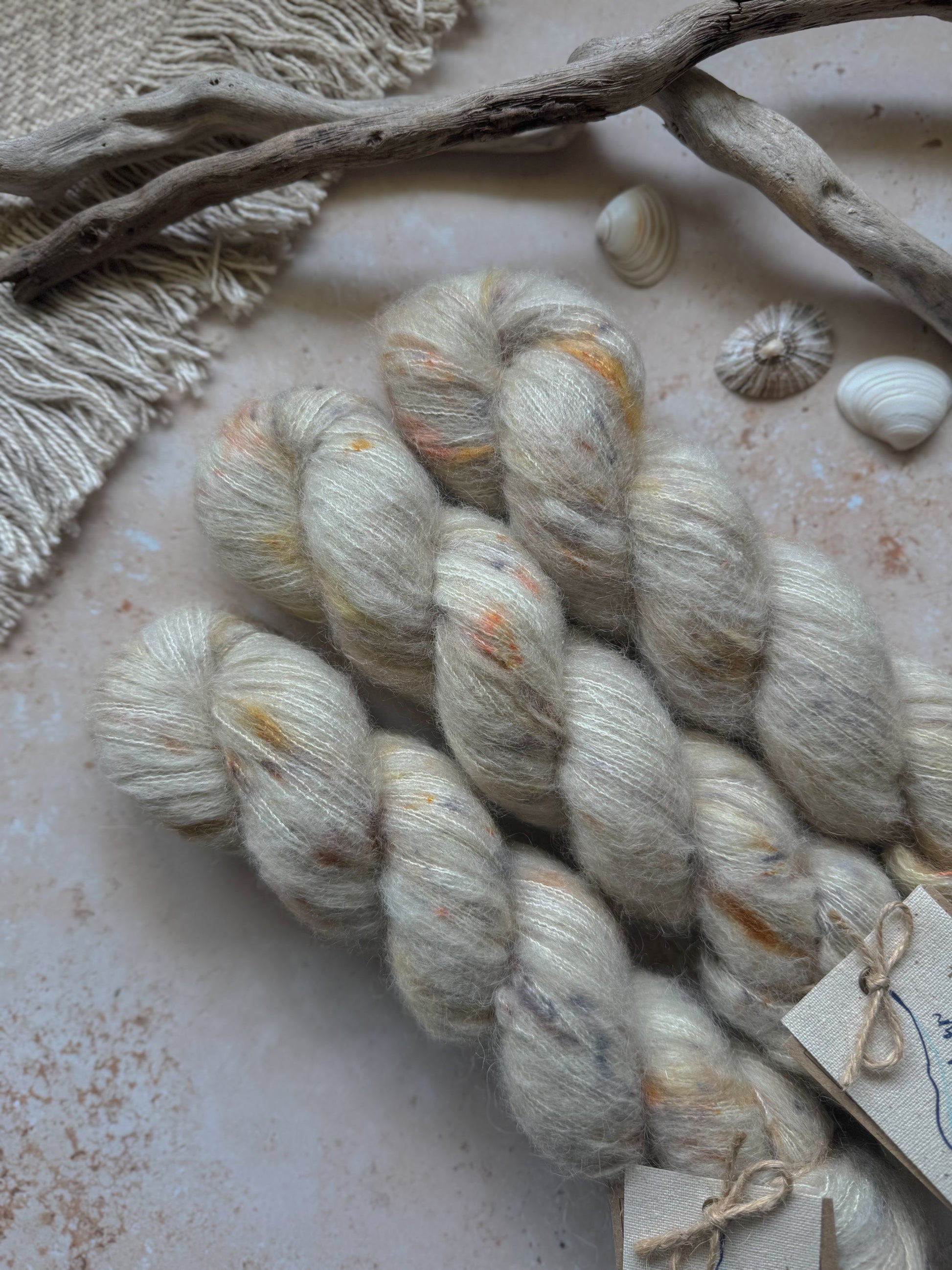 Strandline is a lovely, soft-grey beaut, with orange and grey speckles. The strandline is the high tide mark, where we often find our beachcombing treasures.