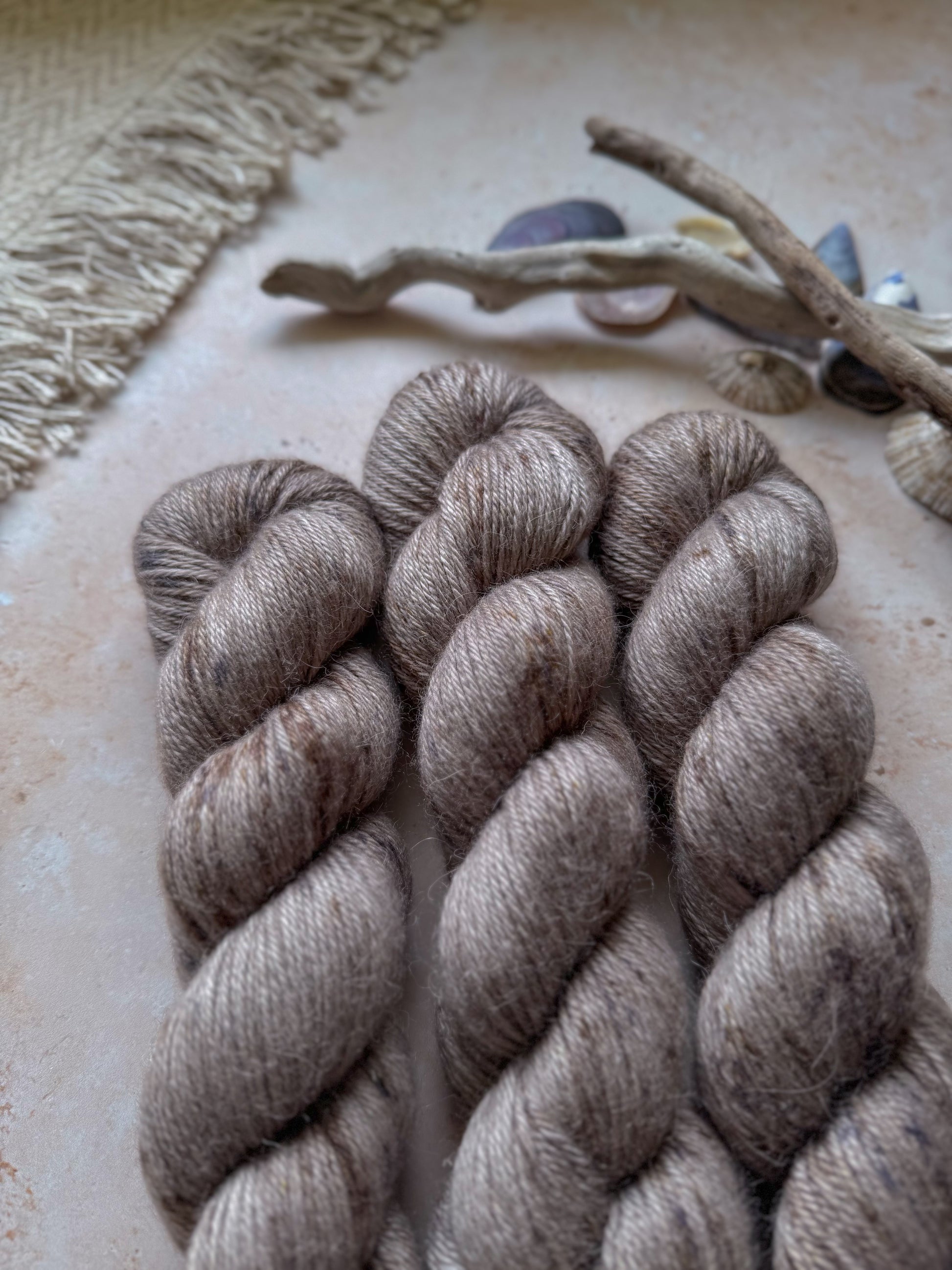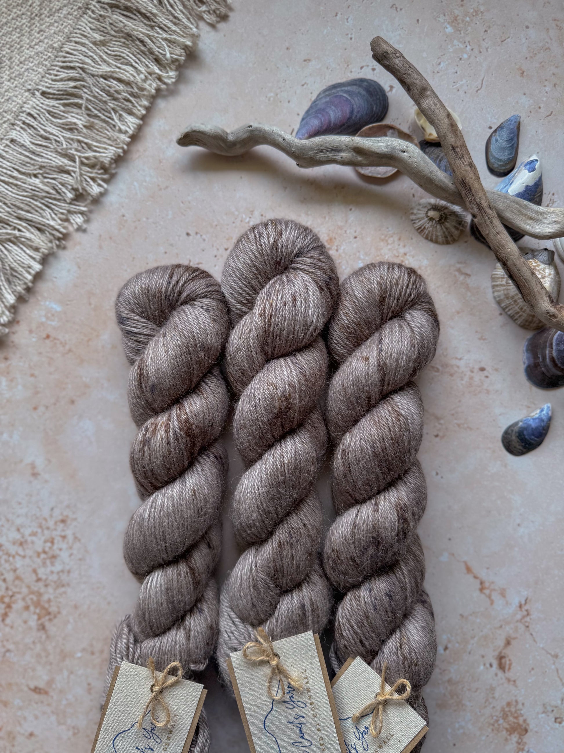 A beautiful cool toned silvery-grey, with brown and silver speckles. Named after the shimmering shingle formed from broken shells.