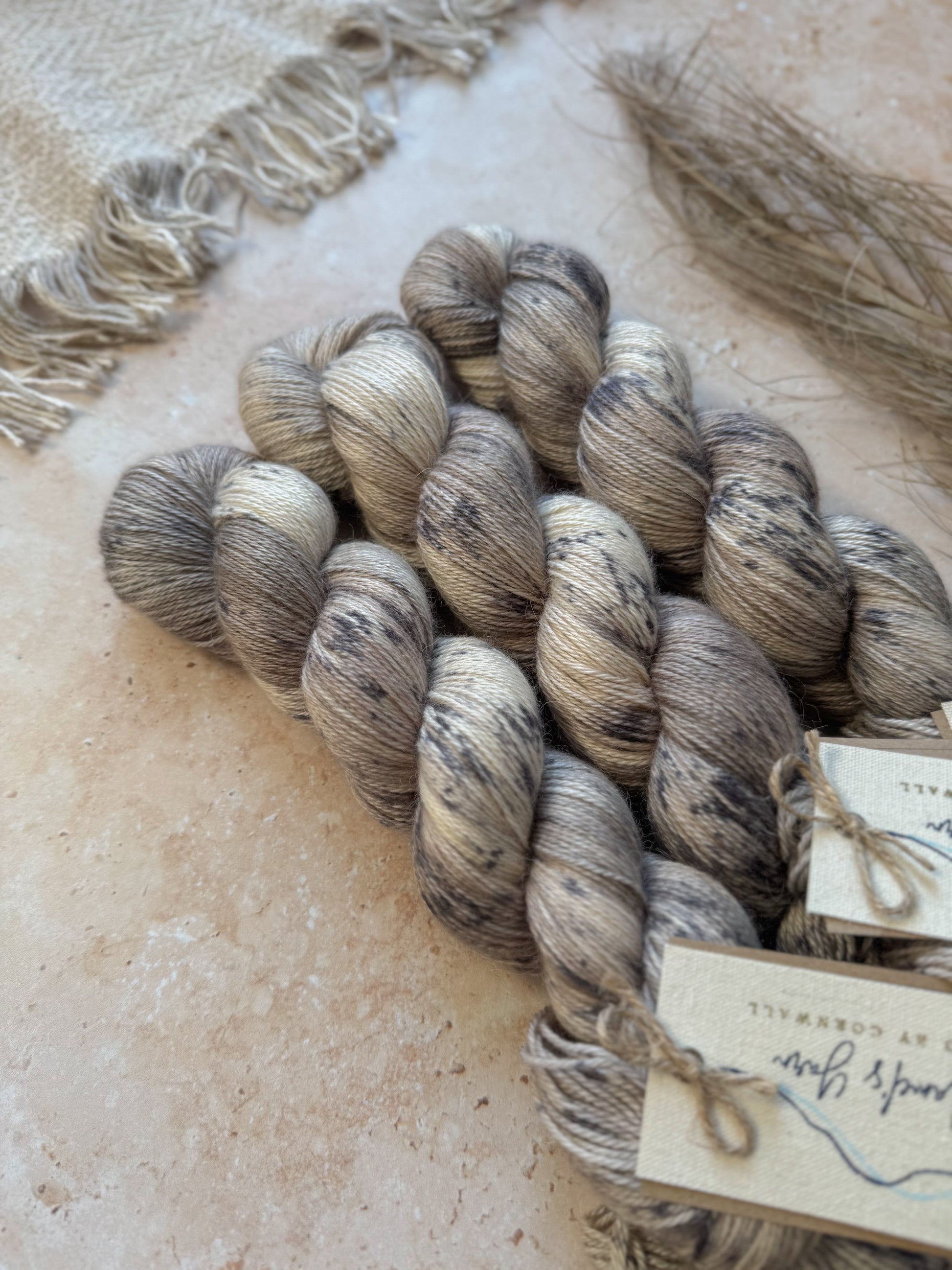 The Fossil Hunter is a beautiful soft off-white, with light grey sections, topped off with grey speckles!