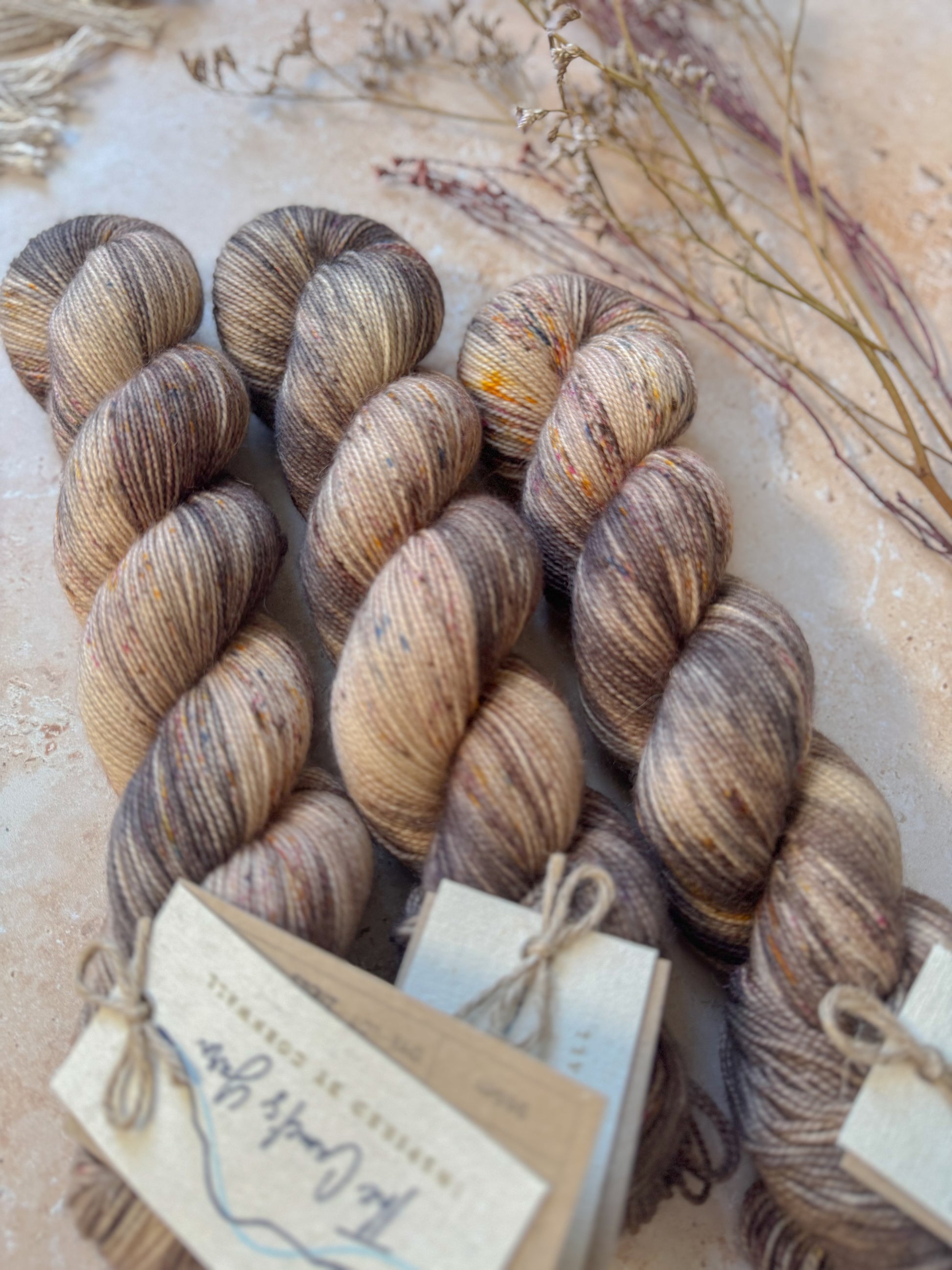 Twist Type: 2-ply. 2 single strands twisted together, giving this yarn a fabulous texture, and making speckles pop!